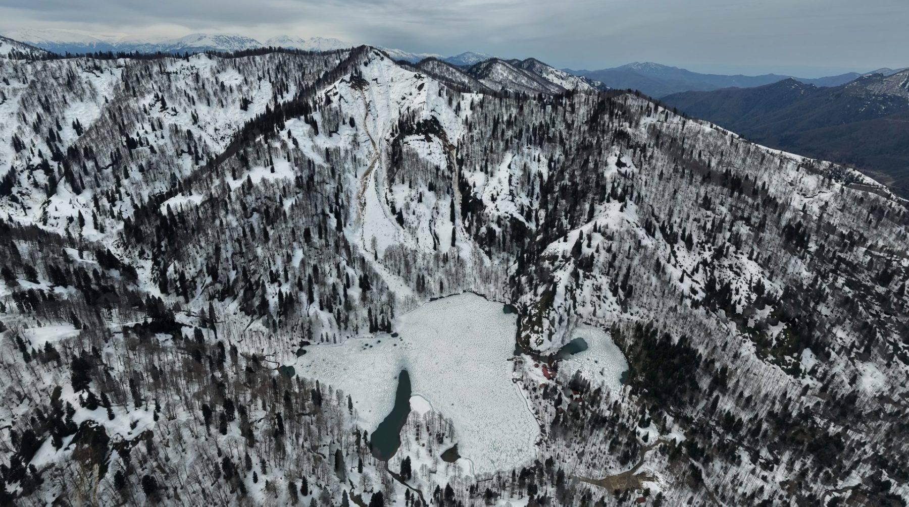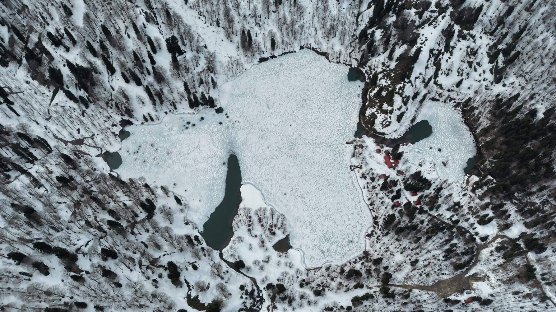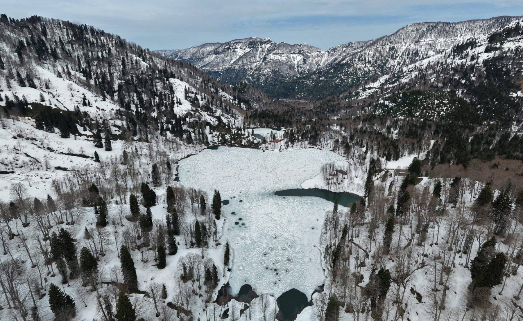 Karagöl çevresinde kar kalınlığı yer yer 2 metreyi bulurken, göl yüzeyinin büyük bölümü ise buzla kaplı halde bulunuyor.