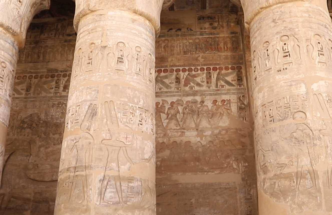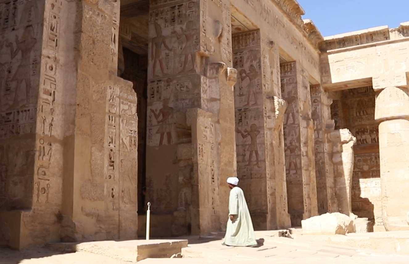 Yolun sonunda ise onlarca asır geçmesine rağmen canlı renklerini ve kabartmalarını koruyan görkemli duvarlarıyla Habu Tapınağı beliriyor. Mısırlı arkeolog Mecdi Şakir, “Habu” kelimesinin ölümsüzlük ve öteki dünya inancıyla bağlantılı bir anlam taşıdığını, korunaklı yer ve bayram, dini ritüel anlamlarına geldiğini söyledi.
