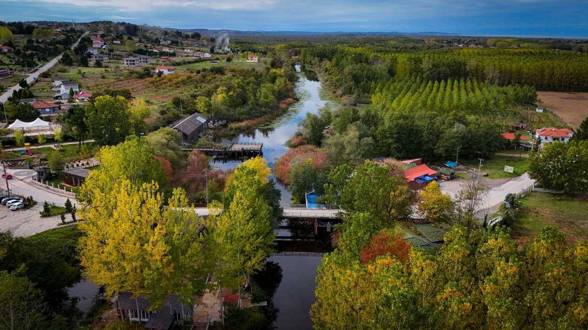 Düzce’den kaynağını alıp Sakarya topraklarından geçerek Karadeniz’e dökülen Büyük Melen Çayı’nın havzası da sonbaharın ahenkli renklerine teslim oldu. Nehir yatağı boyunca uzanan kavak ve söğüt ağaçları, sarı, kızıl ve kahverenginin iç içe geçtiği tonlarla güz mevsiminin bölgedeki etkisini gözler önüne seriyor.