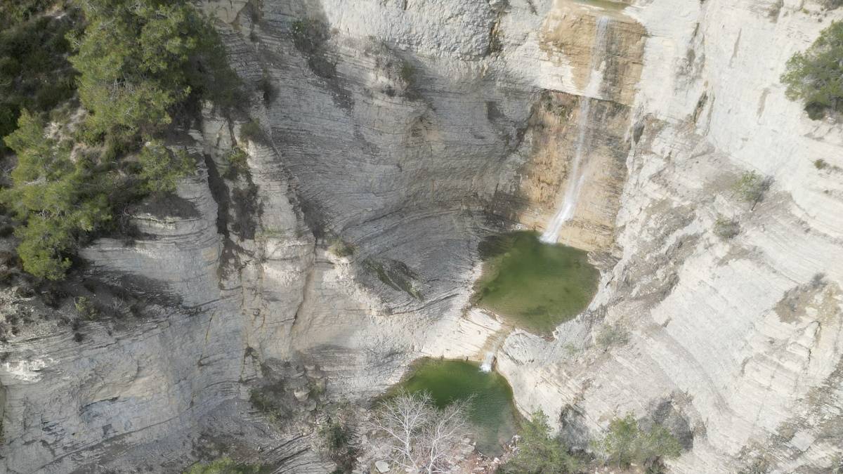Yaklaşık 30 metre yüksekten akan şelale dron ile görüntülendi.