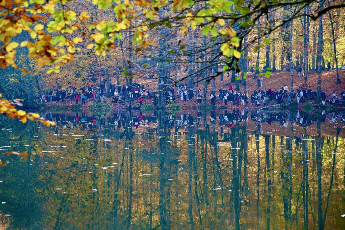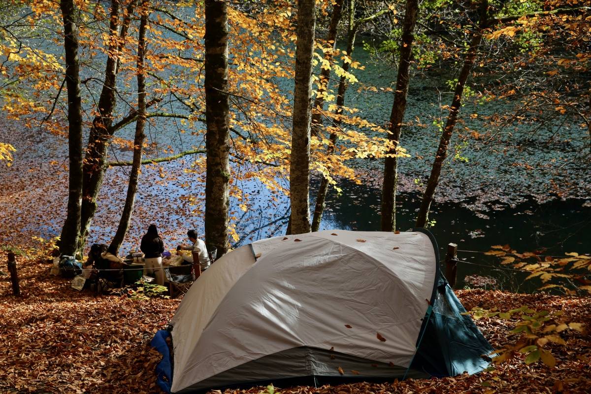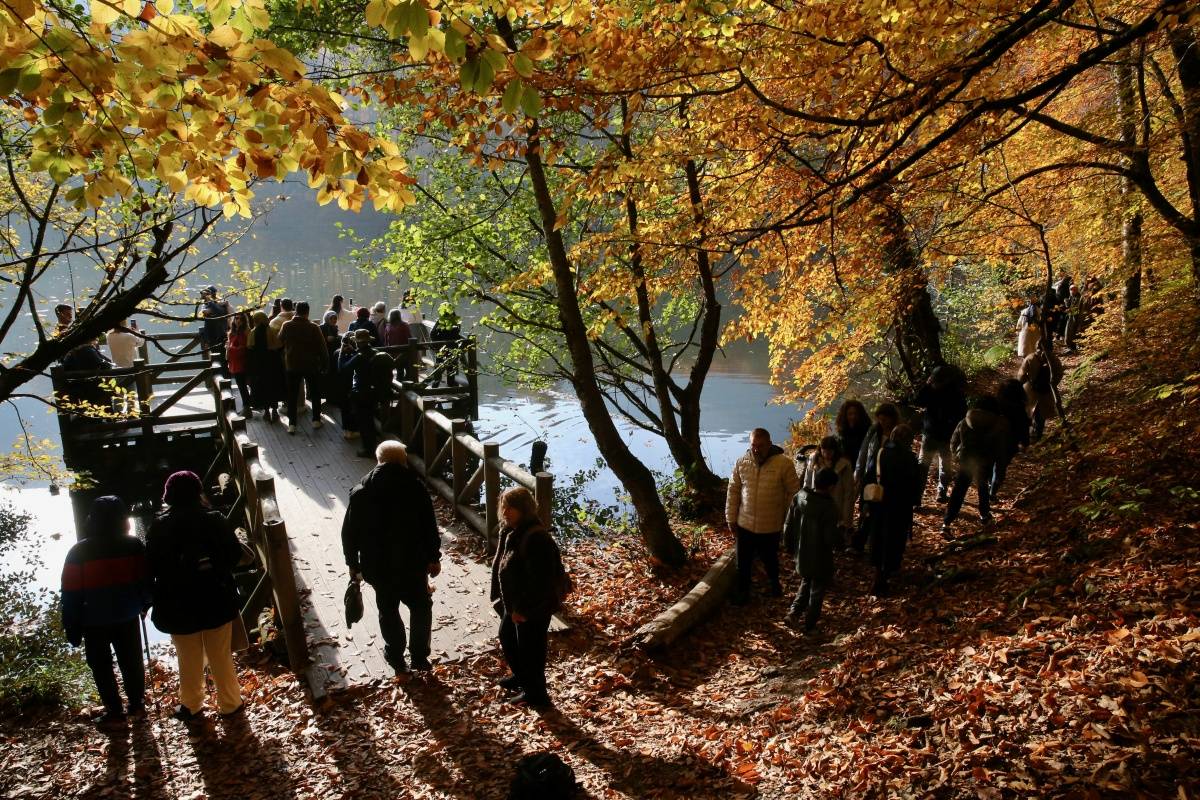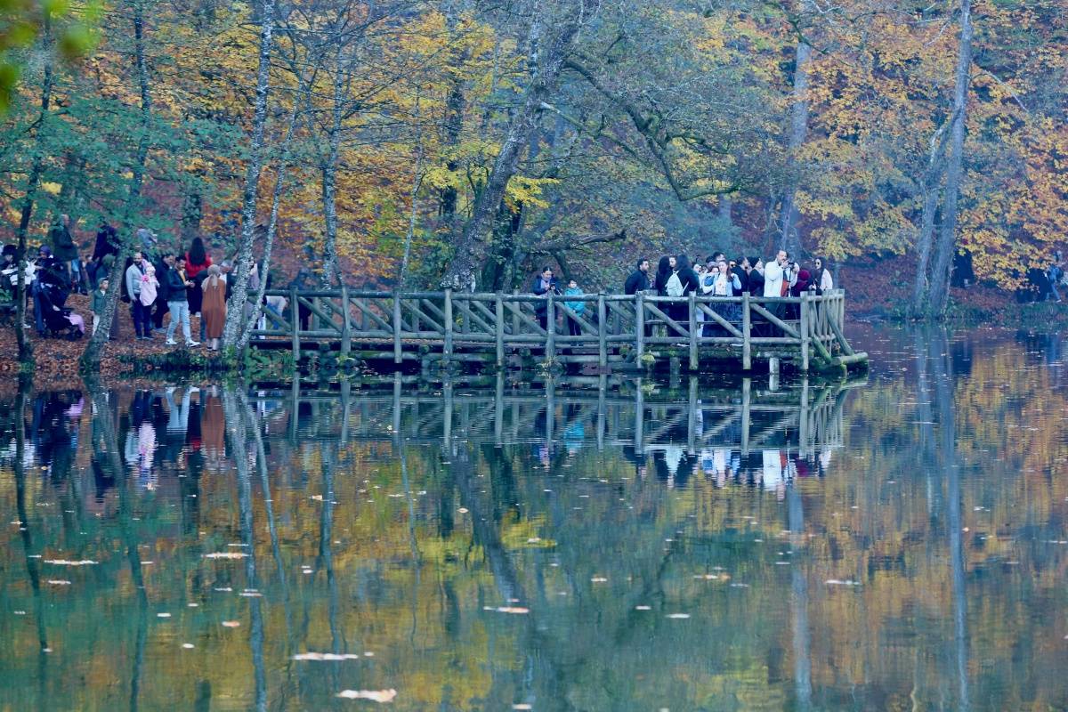 Sonbaharda yeşil, sarı, kahverengi ve kızılın tonlarıyla renklenen Yedigöller Milli Parkı, okullara verilen ara tatilde doğaseverlerin akınına uğruyor.