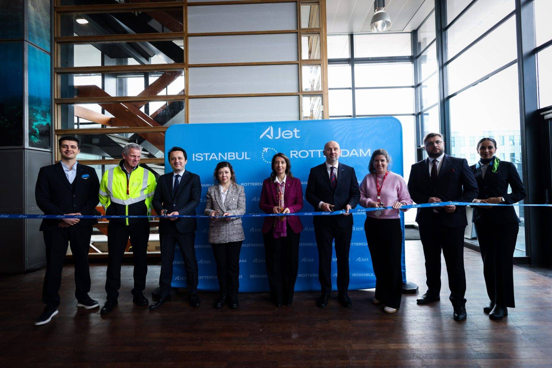Rotterdam’a yapılan törene; Türkiye Cumhuriyeti Rotterdam Başkonsolosu Sevgi Kısacık, Turizm Müşaviri Pınar Bilgen Ermiş, AJet üst yönetimi ve havalimanı yöneticileri katıldı.