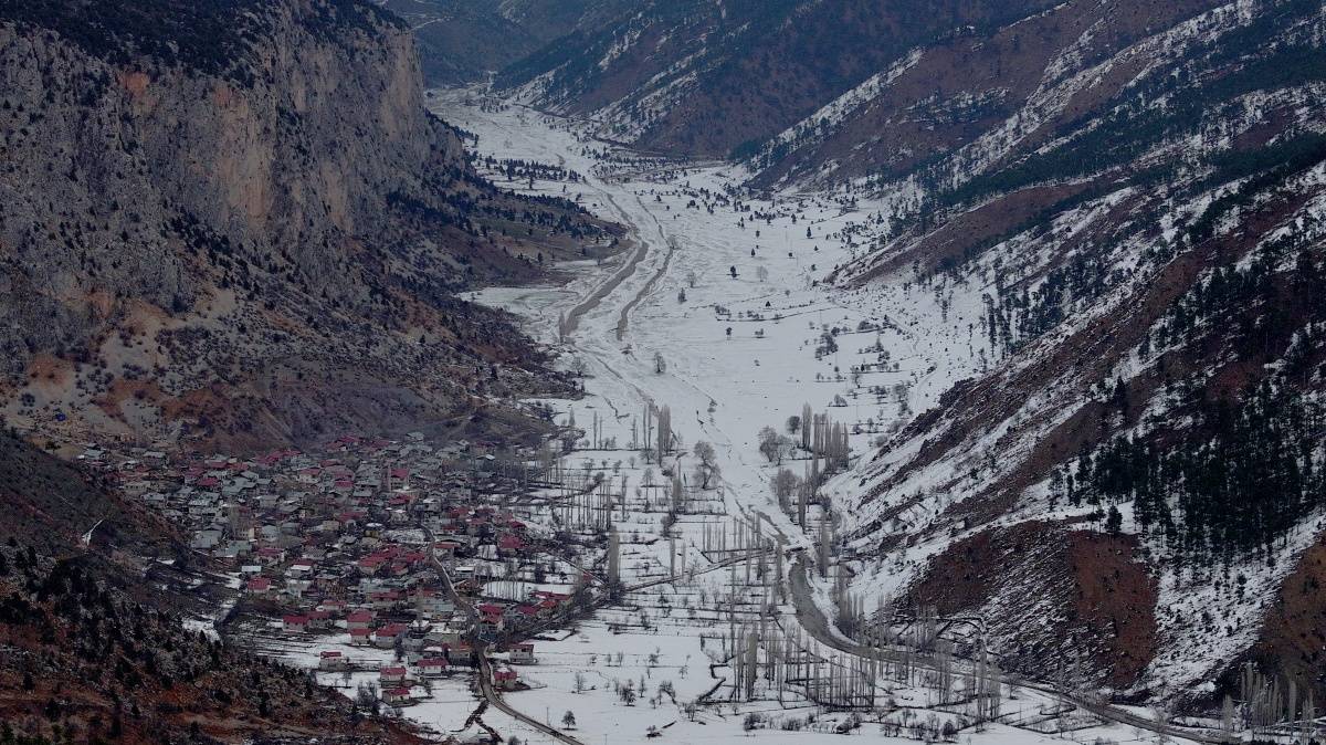 Aladağlar’ın Kayseri’nin Yahyalı ilçesi sınırlarında kalan bölgesinde kar yağışının ardından oluşan manzara, dronla kaydedildi.