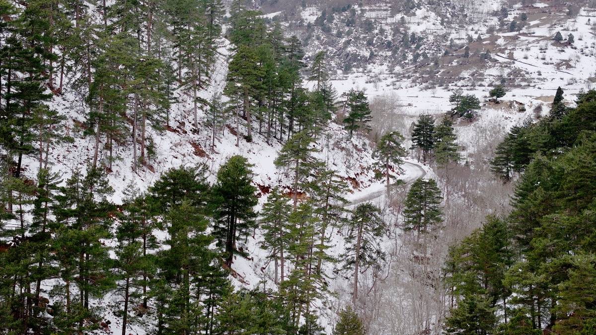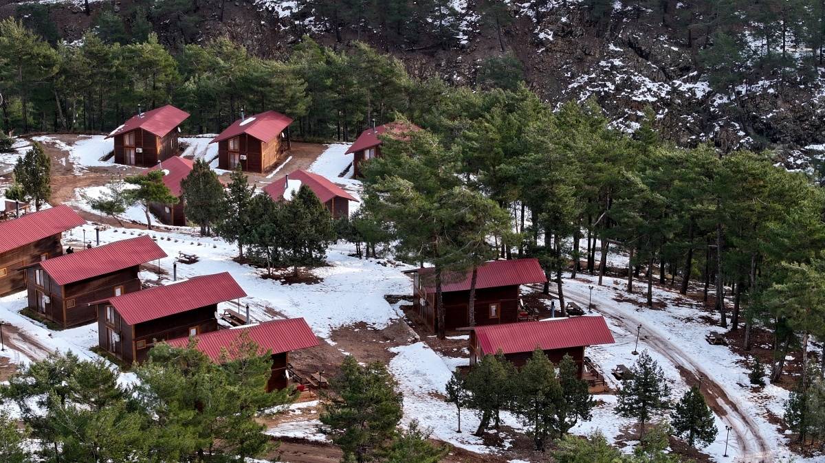 Bölgedeki ormanlık alanda özellikle yüksek kesimlerde etkili olan kar yağışı sonrası çam ağaçları beyaza büründü. Bu alanda rüzgargülleri, bungalovlar, ağaçlar ve kırsal mahalleler kar altında kaldı.