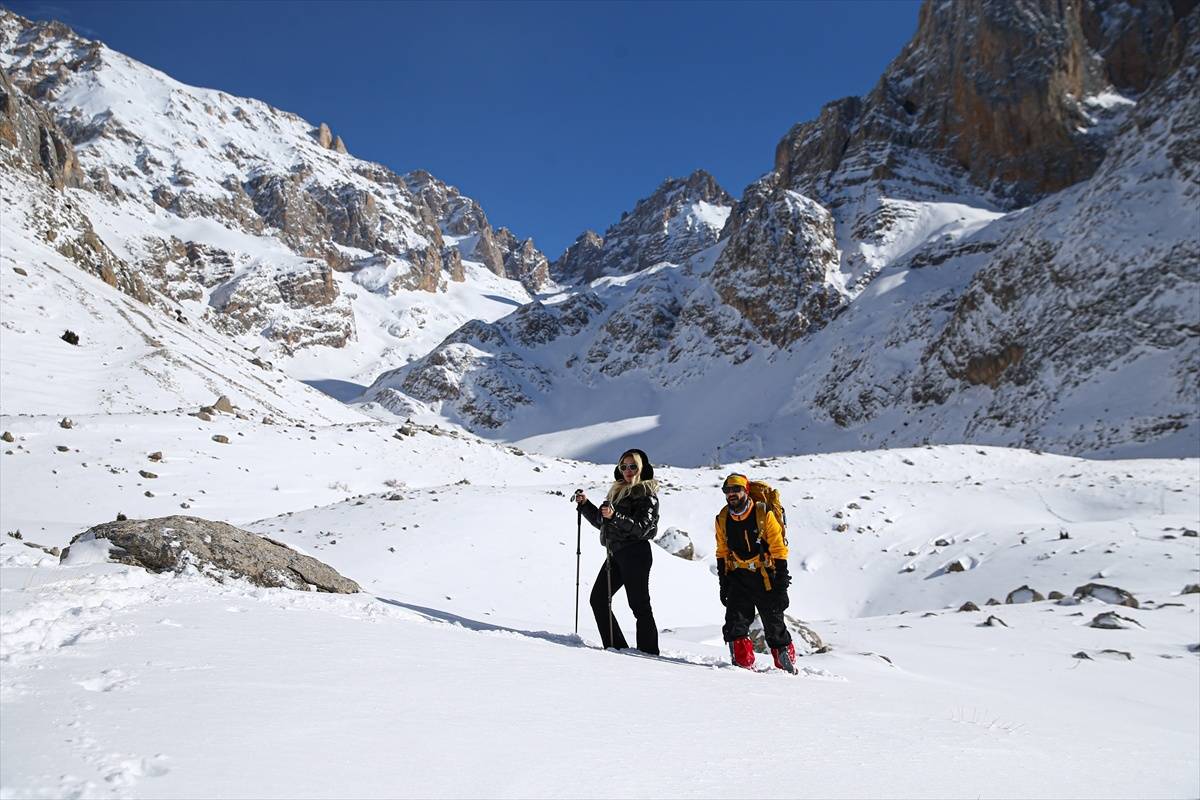 Kar yağışının etkisiyle beyaz örtüyle kaplanan ve 3 bin 700 metrenin üzerinde bazı zirvelerin bulunduğu Aladağlar, tırmanış tutkunlarının ilgisini çekiyor.