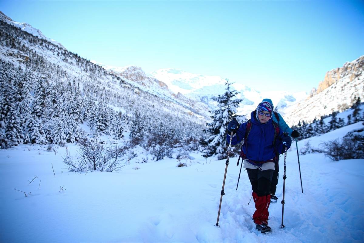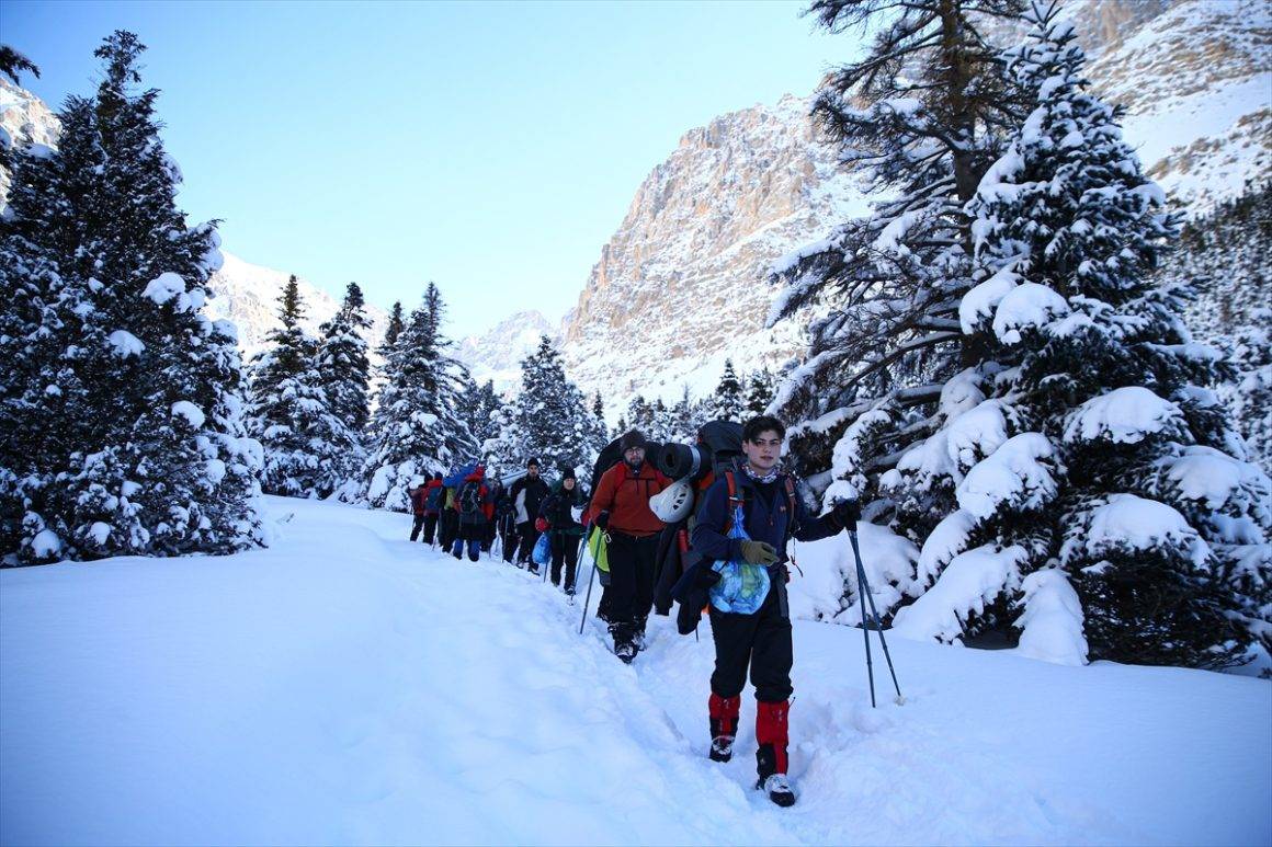 Adana, Niğde ve Kayseri sınırlarında yer alan Aladağlar, kar yağışıyla beyaza bürünen eteklerinde performansını sınamak isteyen tırmanış tutkunlarını ağırlıyor.