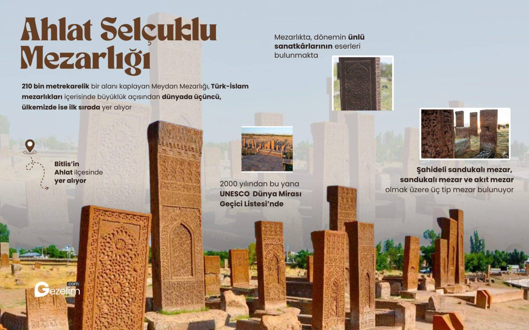 Bitlis’in Ahlat ilçesinde bulunan Ahlat Selçuklu Mezarlığı, Orta Çağ Türk-İslam sanatının en önemli açık hava müzelerinden biri olarak ziyaretçilerini ağırlıyor.