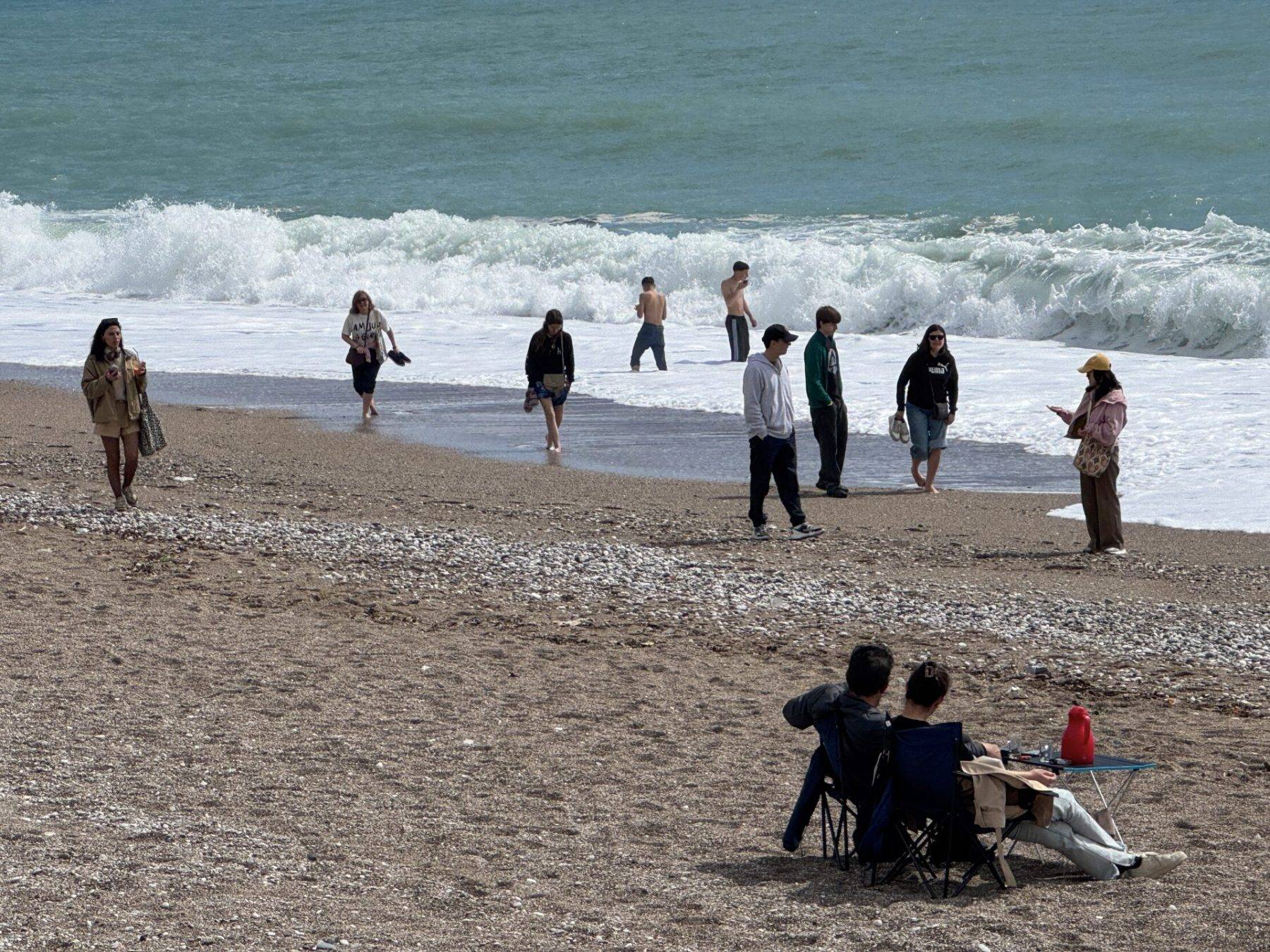 Bazı tatilciler denize girip plajda güneşlenirken, bazıları da deniz kenarına kurdukları kamp sandalyelerine oturarak zaman geçirdi.