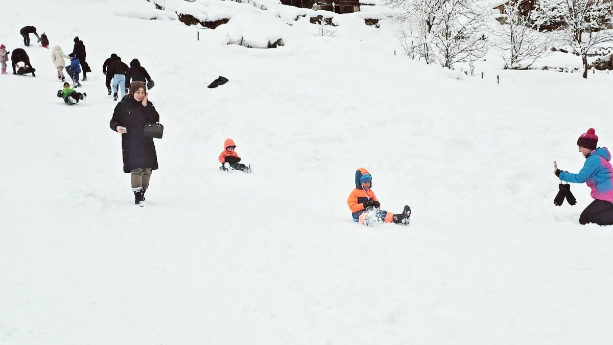 Beyaz örtüyle kaplanan yaylayı ziyaret edenlerden bazıları kartopu oynadı, bazıları da kızakla ve poşetle kaydı. Ziyaretçiler, seyrine doyumsuz manzara eşliğinde keyifli vakit geçirdi.