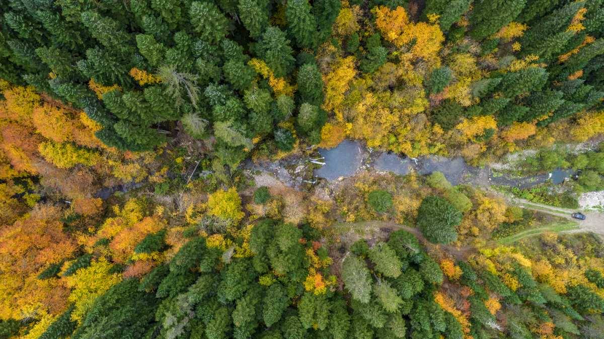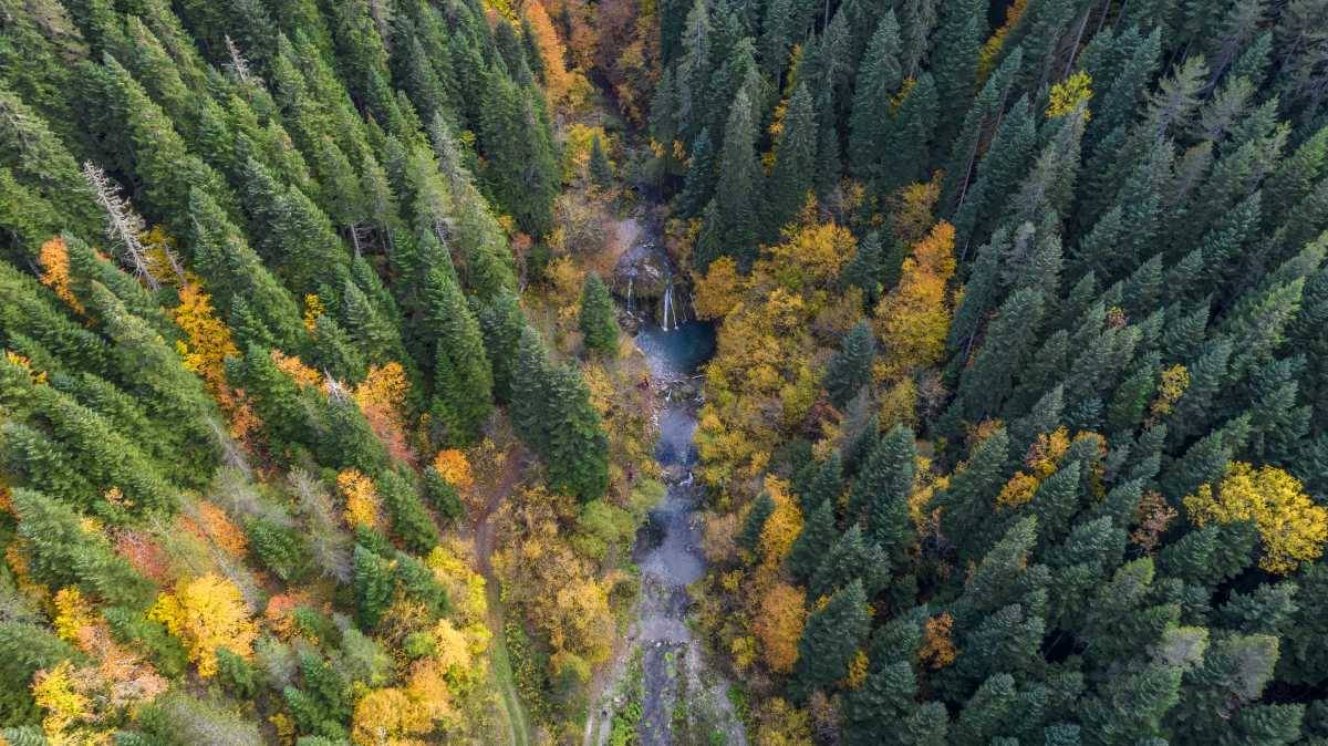 Şelale ve çevresindeki sonbahar renkleri havadan görüntülendi.