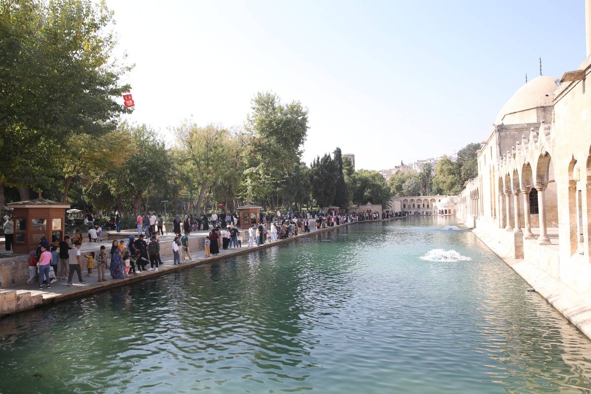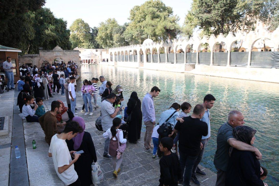 Türkiye’nin önemli turizm merkezlerinden Şanlıurfa’daki tarihi Balıklıgöl Yerleşkesi’nde ara tatil dolayısıyla ziyaretçi yoğunluğu yaşanıyor.