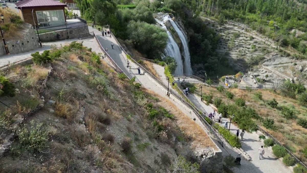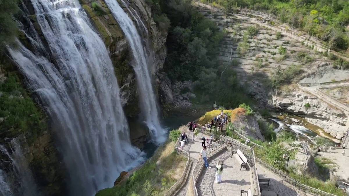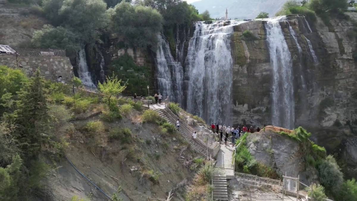 Yerli ve yabancı turistler, özellikle şelalenin yüksekten dökülen sularının oluşturduğu görsel şöleni hayranlıkla izledi.