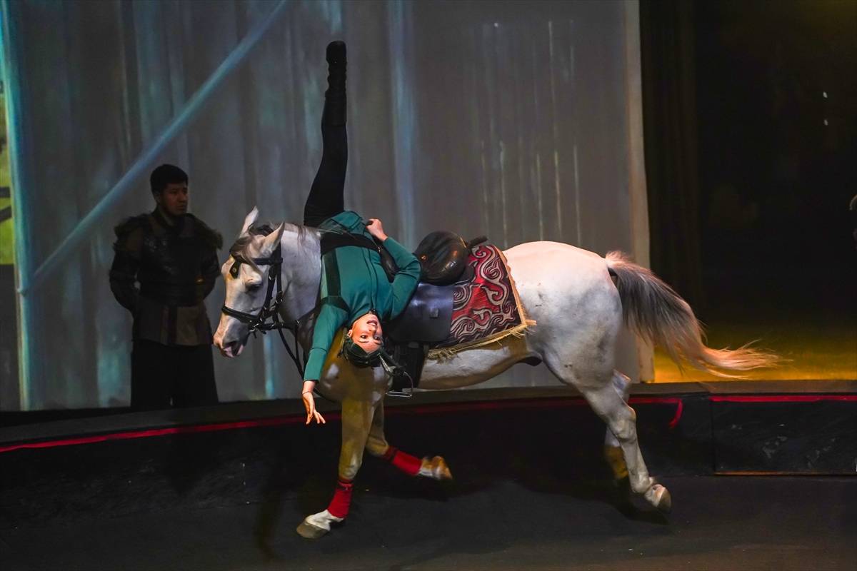 Türklerin Anadolu’yu yurt edinme sürecini anlatan atlı gösterinin genel sanat yönetmen yardımcısı Kağan Server Atıcı ise atlarla insanların dostluğunu ve dansını sahnelediklerini söyledi.
