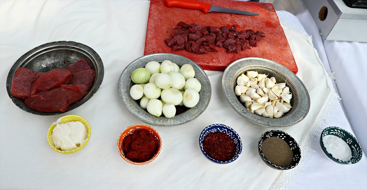 Yemeğin tarifini anlatan şef Mahmut Eren, sarımsaklı et yemeğinin Çankırı’nın önemli lezzetlerinden biri olduğunu söyledi.