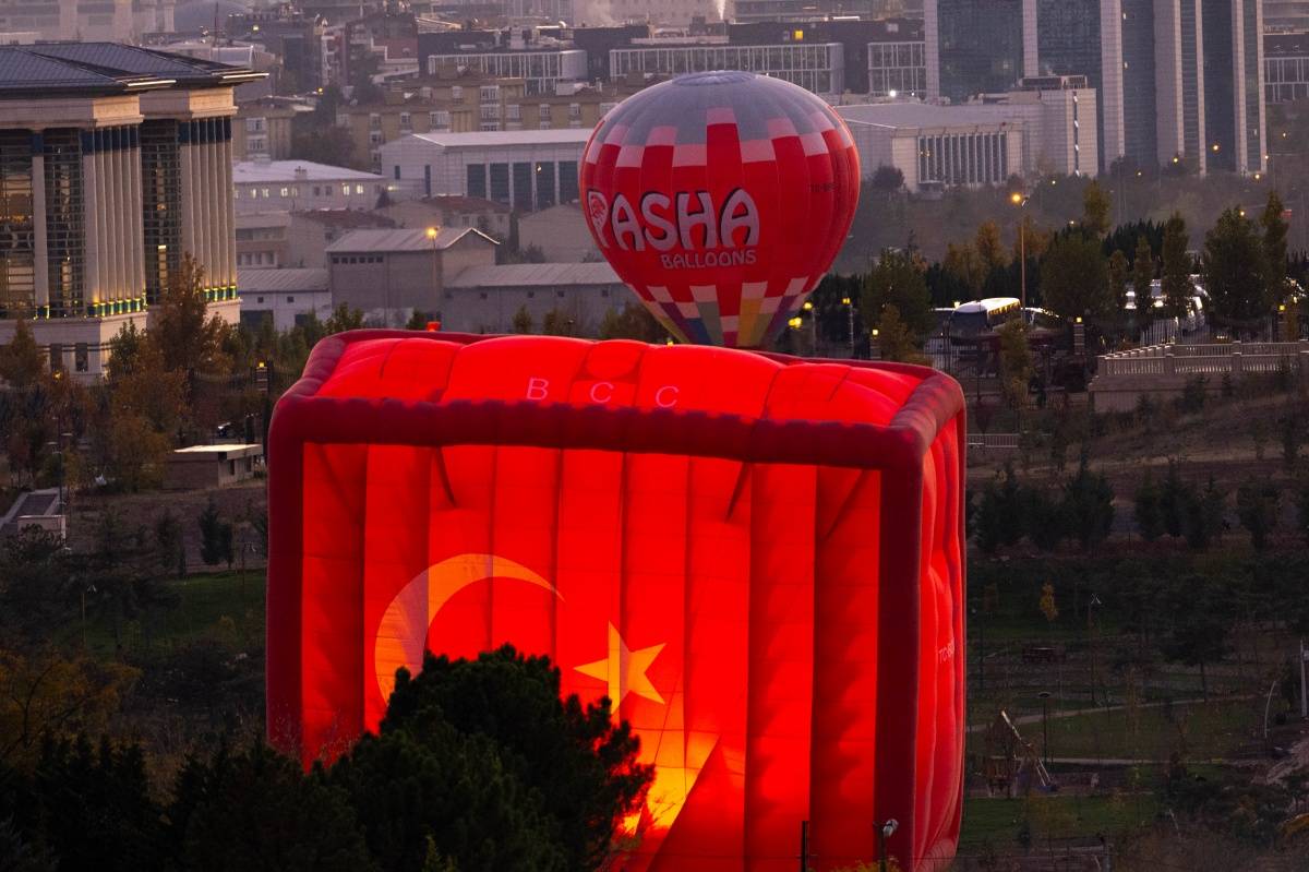 Kapadokya bölgesinden getirilen 16 balondan 8’i Cumhurbaşkanlığı Bulvarı’na, 8’i Millet Ormanı’na yerleştirildi. Vatandaşların da izlediği etkinlikte Milli Savunma Bakanlığı Mehteran Birliği konser verdi.