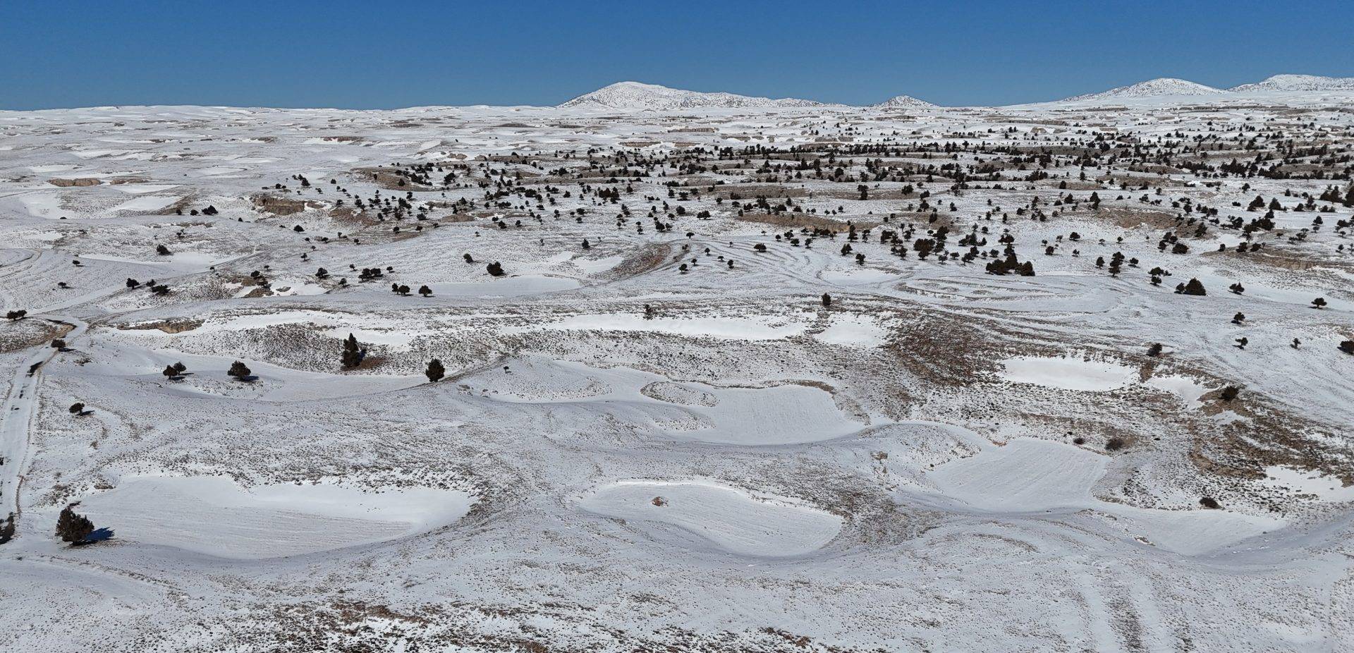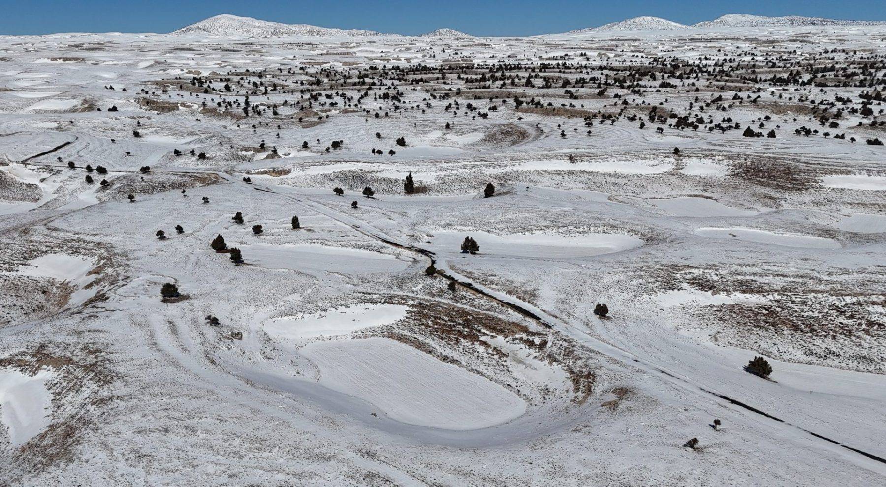 Silifke ile Erdemli ilçesi arasında yaklaşık 2 bin rakımda Eğriçayır yaylası çevresindeki karla dolan obruklar dronla görüntülendi.