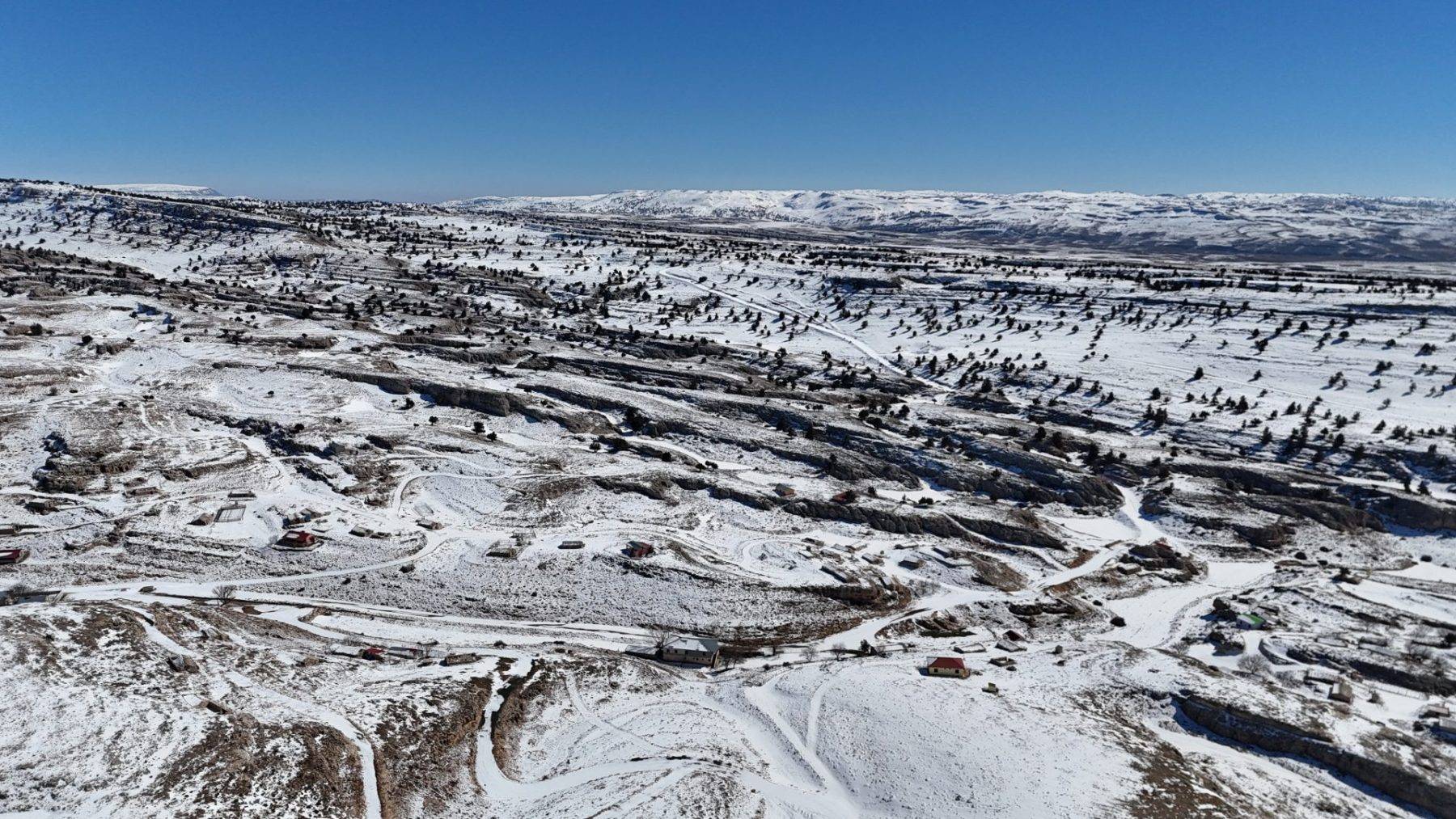 Mersin’de bu yıl sert geçen kış mevsiminde etkili olan yağışlar üreticileri umutlandırdı. Erdemli ve Silifke ilçesi arasındaki Eğriçayır yaylasında ise dev obruklar karla doldu. Oluşan göz dolduran manzara dron ile havadan görüntülendi.