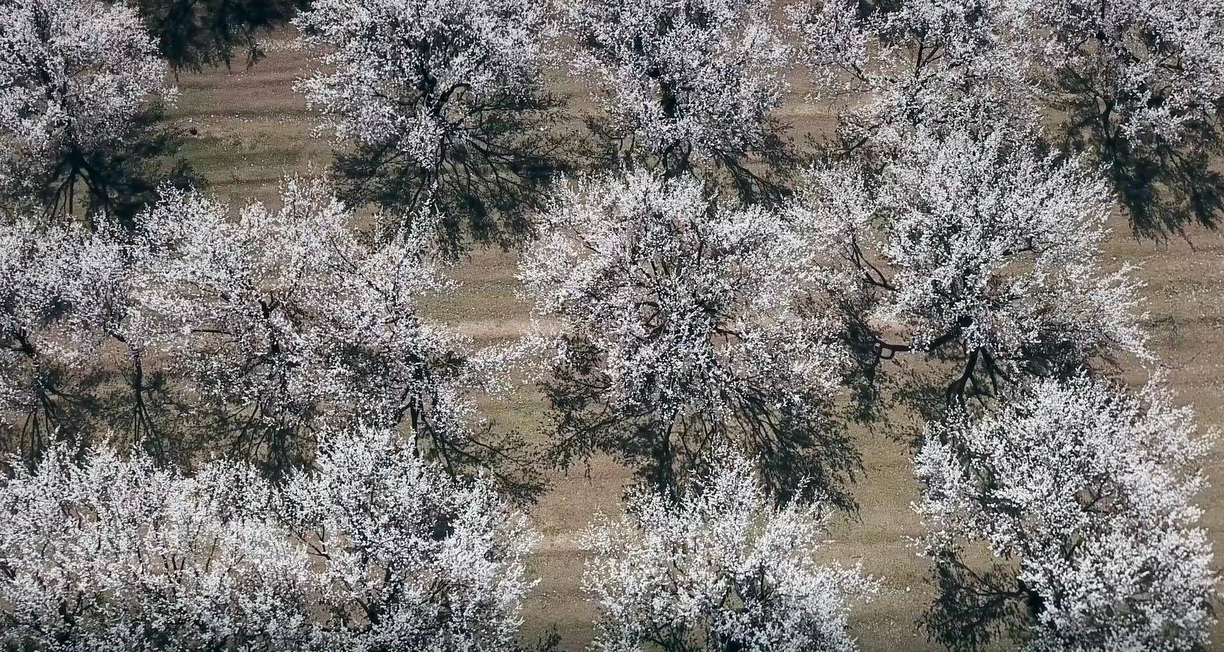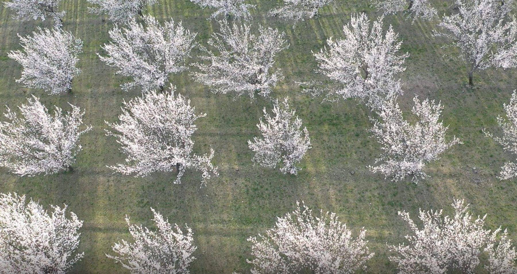 Deniz seviyesinden 5 bin 176 metre yüksekliği ile ‘Türkiye’nin çatısı’ olarak nitelendirilen ve yılın 12 ayı zirvesi buzullarla kaplı olan Ağrı Dağı’nın eteklerindeki yaklaşık 800 metre rakımlı Iğdır Ovası’ndaki kayısı bahçeleri adeta beyaza büründü.