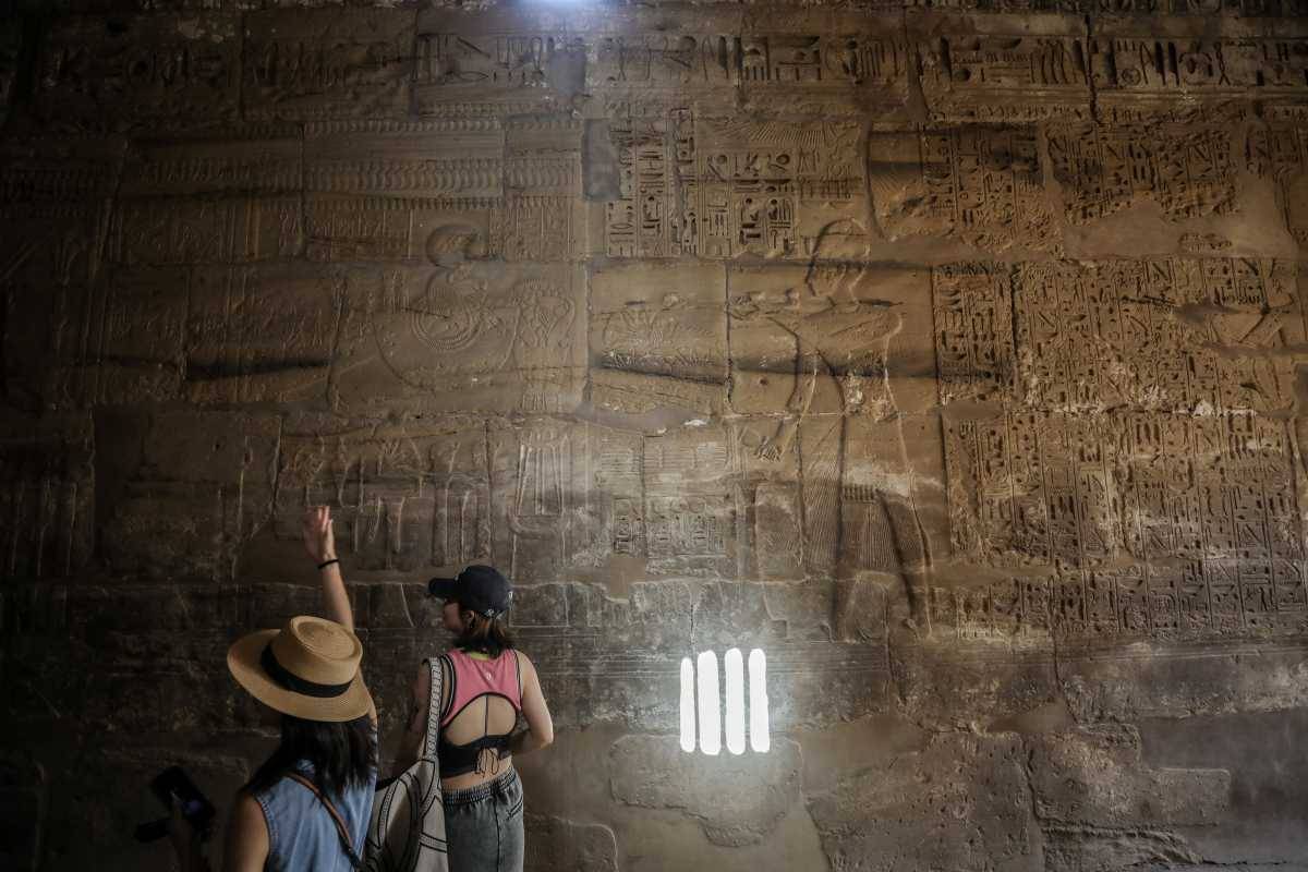 Özellikle Büyük Hipostil Salonu’ndaki, gökyüzüne uzanan nilüfer ve papirüs şeklindeki devasa sütunlar, sanki taşa kazınmış bir ormanın içinde yürüyormuş hissi veriyor.