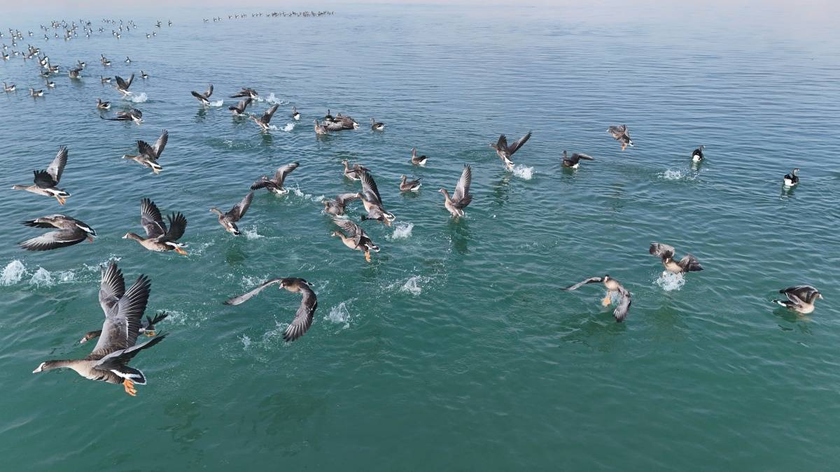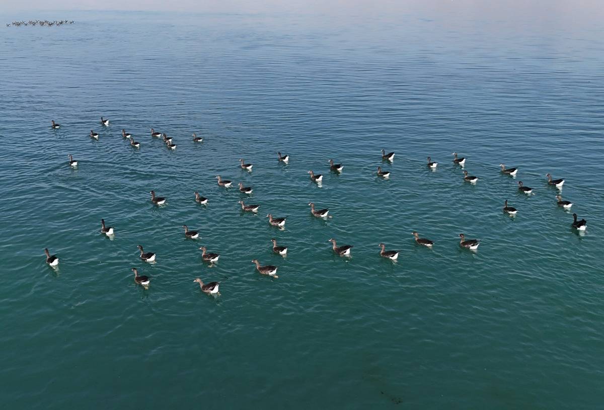 Gölge ve çevresinde konaklayan yüzlerce küçük sakarca kazı dron ile net bir şekilde kayıt altına alındı. Zarif görüntüleri ile Erçek Gölü’ne renk katan küçük sakarca kazları görsel şölen oluşturdu.