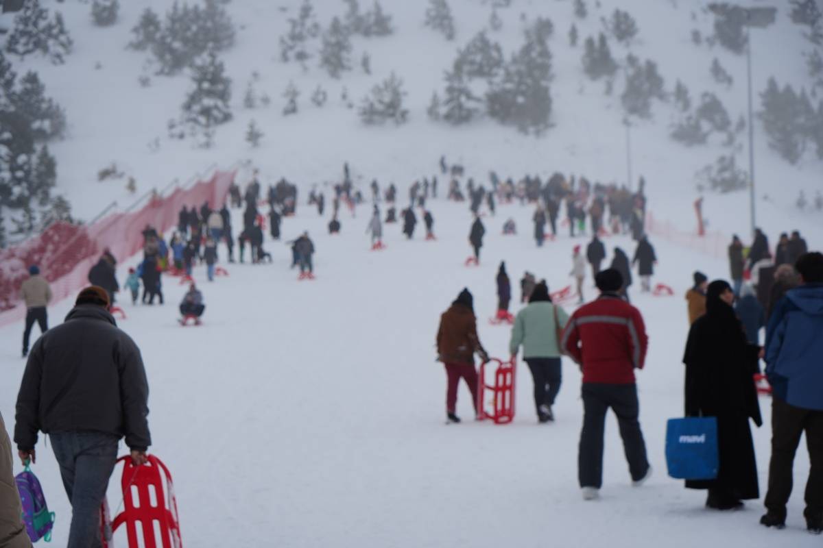 Kayak pistlerinde renkli görüntüler oluşurken, kayak yapmayan ziyaretçiler ise aileleriyle birlikte Ardıçlı Gölü manzarasının keyfini çıkardı.