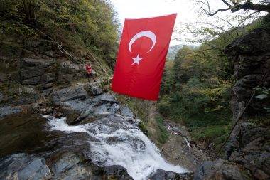 Cumhuriyet coşkusu doğanın kalbinde: Şelaleye Türk bayrağı astılar!