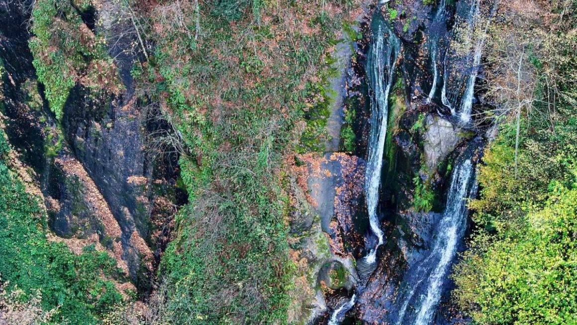 Güzeldere köyünde bulunan ve 130 metre yükseklikten akan şelaleyi saran köknar ve çınar ağaçları, sonbaharın renklerine büründü.