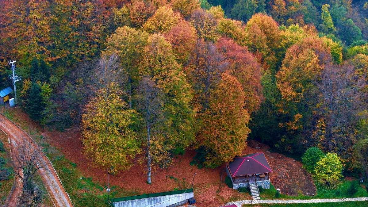 Sarı, kahverengi ve yeşilin tonlarının hakim olduğu tabiat parkında güz manzaraları oluştu.