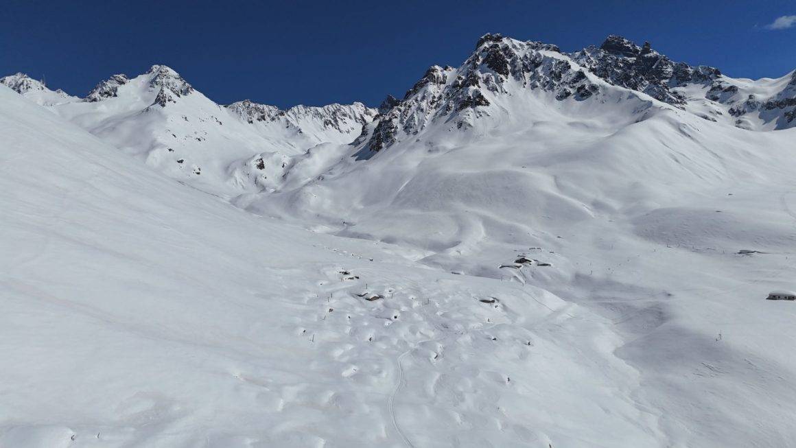 Karlar altında kalan taş ve ahşap kullanılarak yapılan yayla evleri ve yaylanın zirveleri dron yardımı ile havadan kaydedildi.