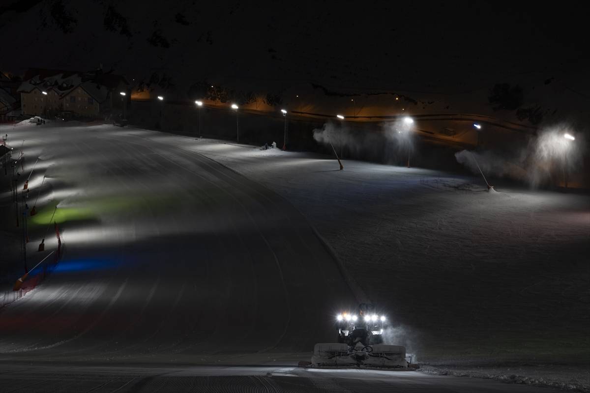 Akşam saatlerinde hava karardıktan sonra Palandöken’de aydınlatma sistemleri devreye alınıyor ve snowtracklarla 10 kilometreyi bulan pistler gece kayağına hazırlanıyor.