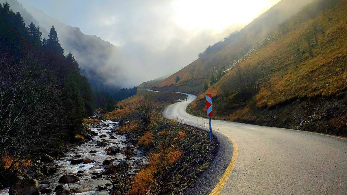 Gümüşhane’de yer alan, 17’nci yüzyılda Rum madenciler tarafından kurulduğu bilinip, tek katlı yapılar ve kiliselerden oluşan Santa Harabeleri, sonbahara sis ve bulutları arasında renk cümbüşüyle veda ediyor.