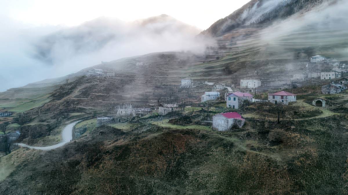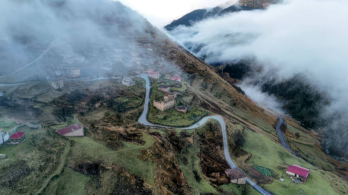 Santa zirvelerde oluşan sis ve bulut deniziyle sonbahar güzellikleri dron kamerasına görüntülendi. Rum-Pontus Devleti’nin kültürel mirası olan Santa’da, taş işçiliğiyle ayakta kalan yapılar, tarihle doğanın iç içe geçtiği eşsiz görüntü oluşturuyor.