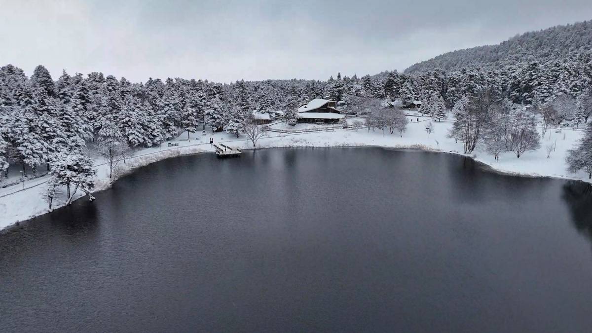Bolu’nun doğa harikası Gölcük Tabiat Parkı’nda etkili olan kar yağışı sonrası seyrine doyumsuz manzaralar oluştu.