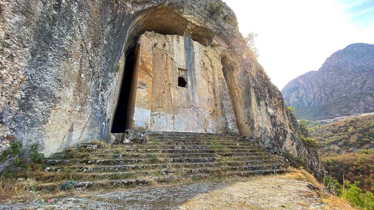 Çorum’un Laçin ilçesi Kırkdilim mevkiinde yer alan ve milattan önce 2’nci yüzyılda yapıldığı düşünülen Kapılıkaya Kaya Mezarı, vatandaşlardan yoğun ilgi görüyor.