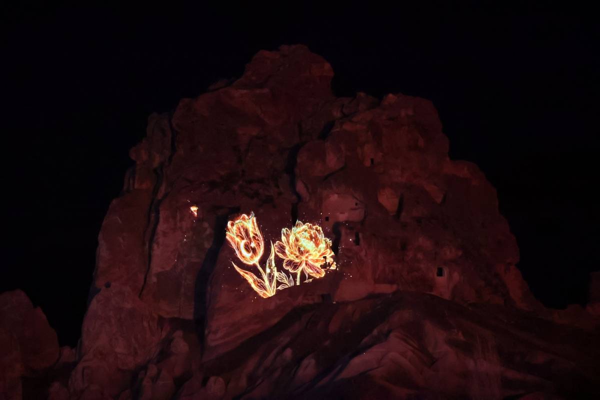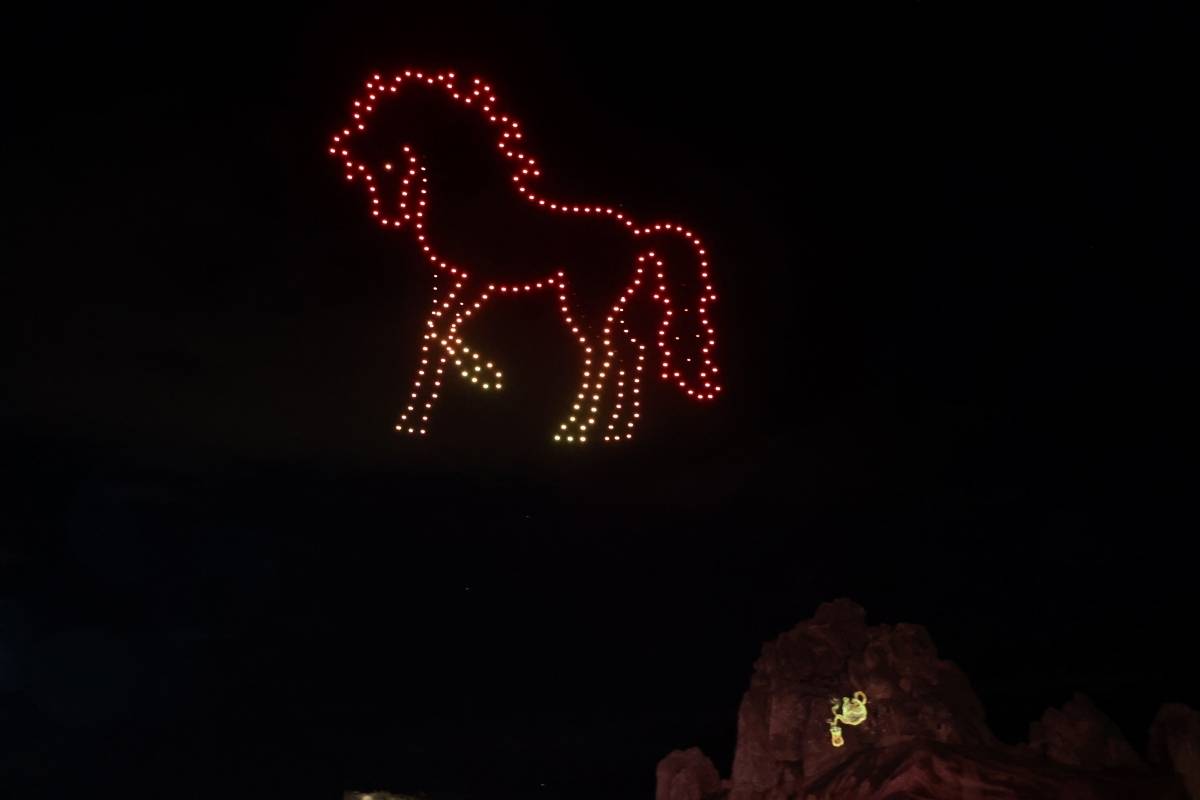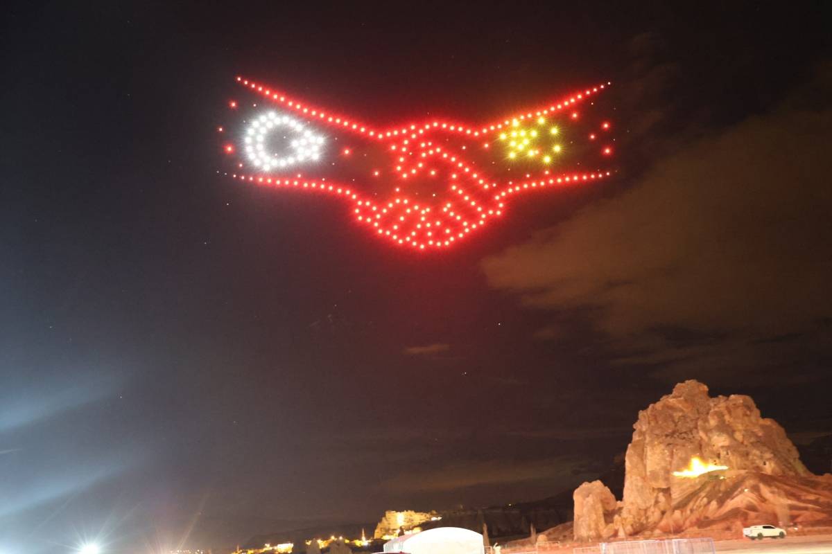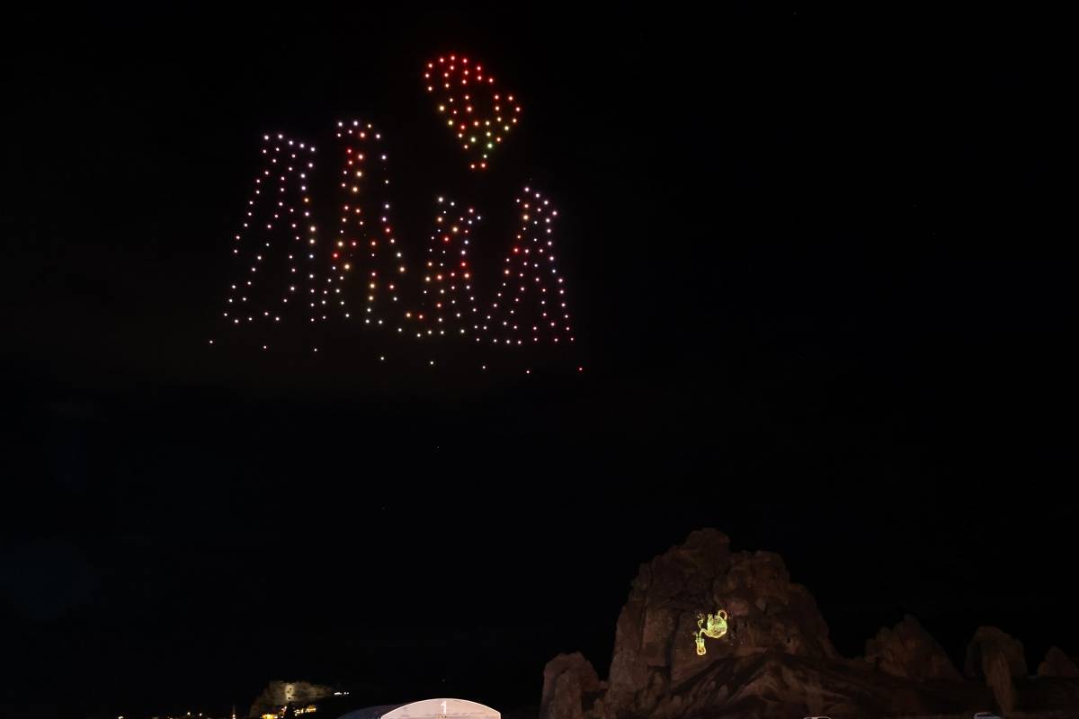 Etkinlik kapsamında tasarlanan sıcak hava balonlarının yerleştirildiği alanda, 3D Mapping gösterisi ile çok sayıda dronun gökyüzünde çeşitli figürler oluşturduğu gösteri izlendi.