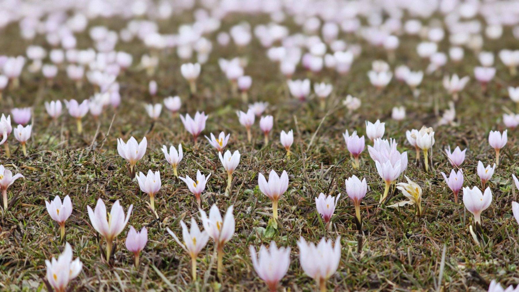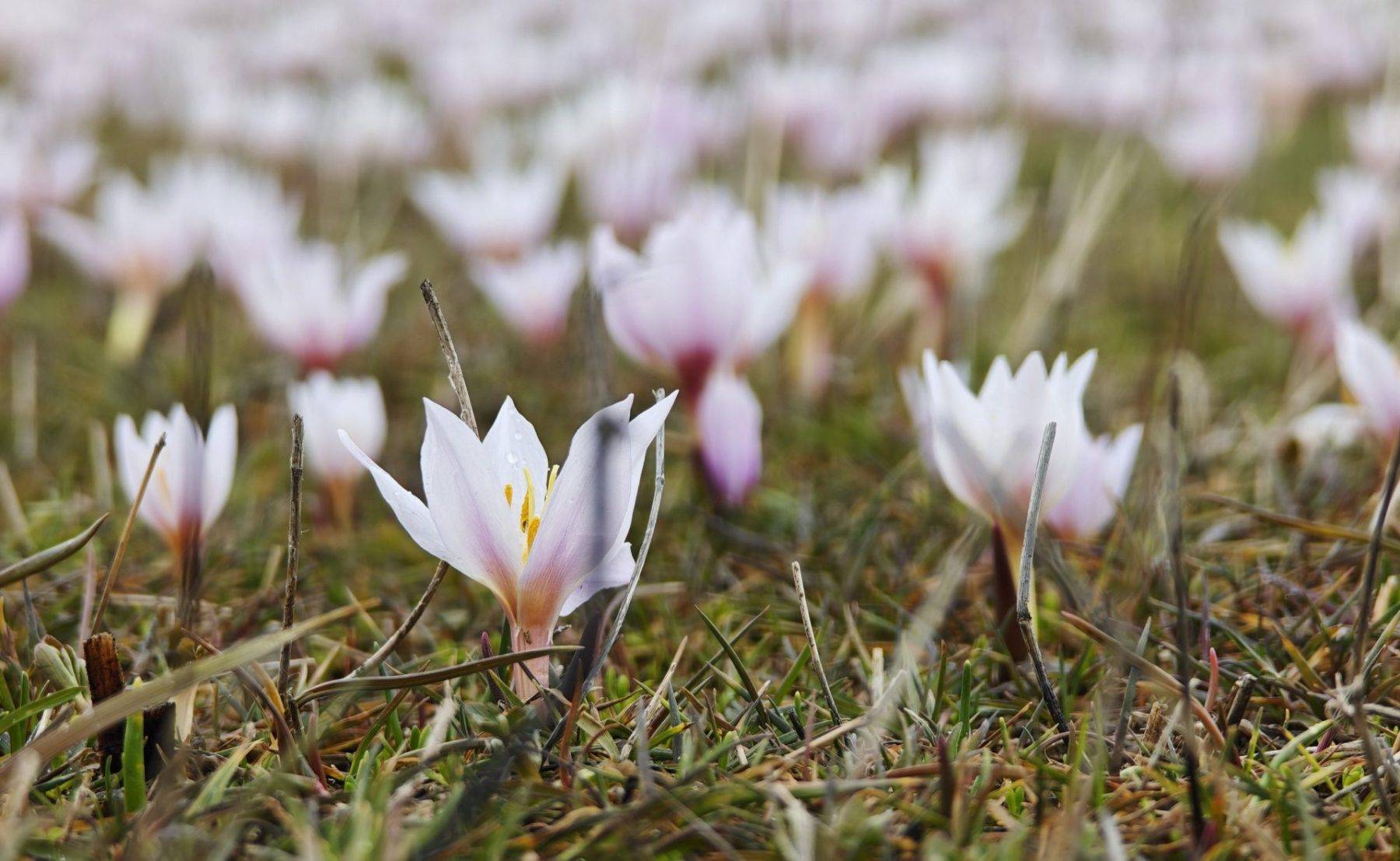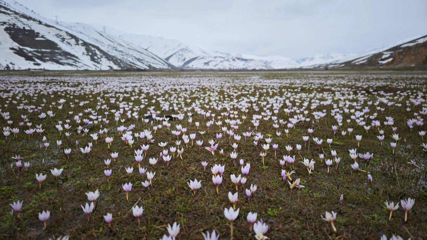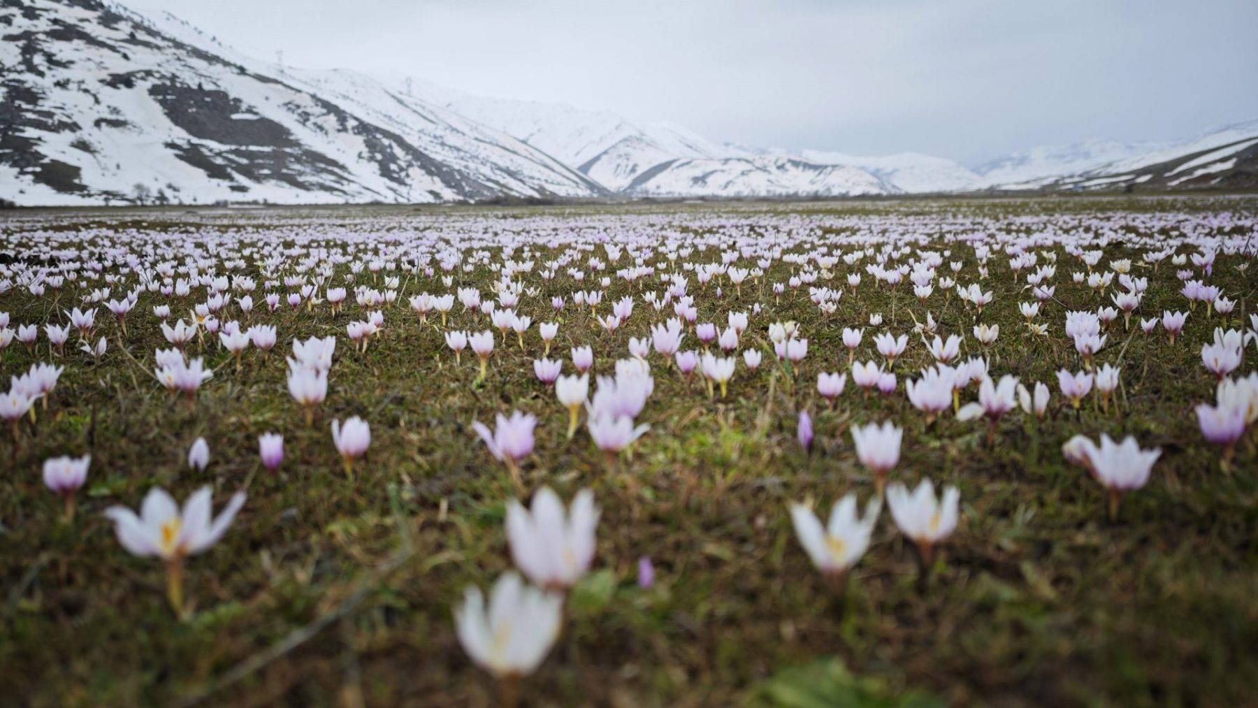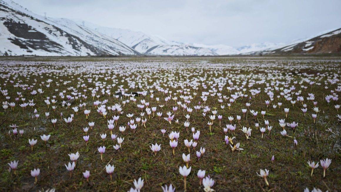 Bitlis’in Tatvan ilçesindeki Güzeldere Vadisi, açan çiğdem çiçekleriyle beyaz ve pembeye bürünerek güzel görüntüler oluşturuyor.