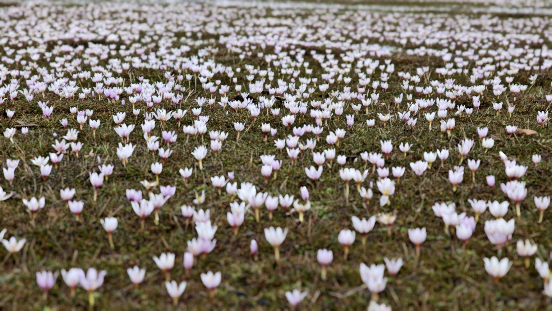 Doğanın canlanması ile birlikte açan çiğdem çiçeklerinin sulak alanlar ve vadide oluşturduğu manzara hayranlık uyandırıyor.