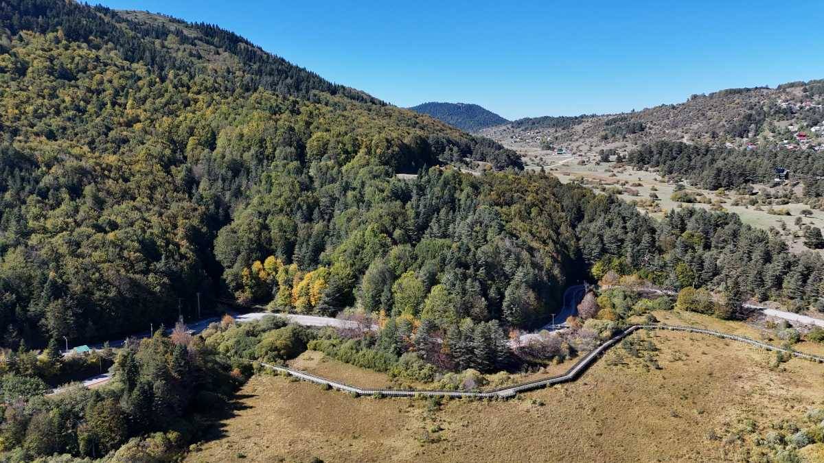 Yeşilin her tonunu barındıran ormanlarla çevrili milli parkta, sararmaya başlayan ağaçlar renk cümbüşü oluşturdu. Milli parktaki eşsiz manzara dronla görüntülendi. Göl çevresindeki çayırlarda mavi çiçekleri ile açan yöreye özgü Abant çiğdem çiçekleri de milli parka renk kattı.