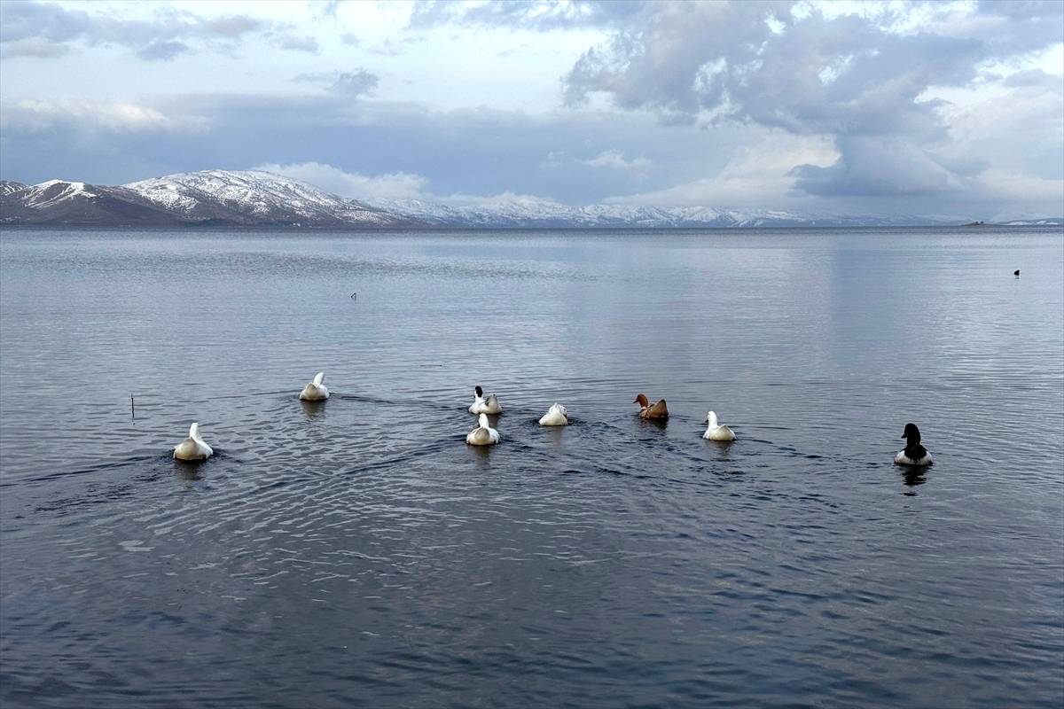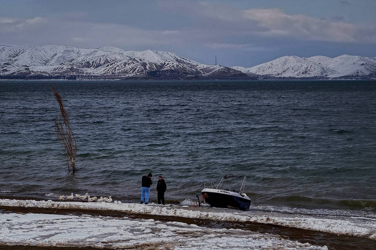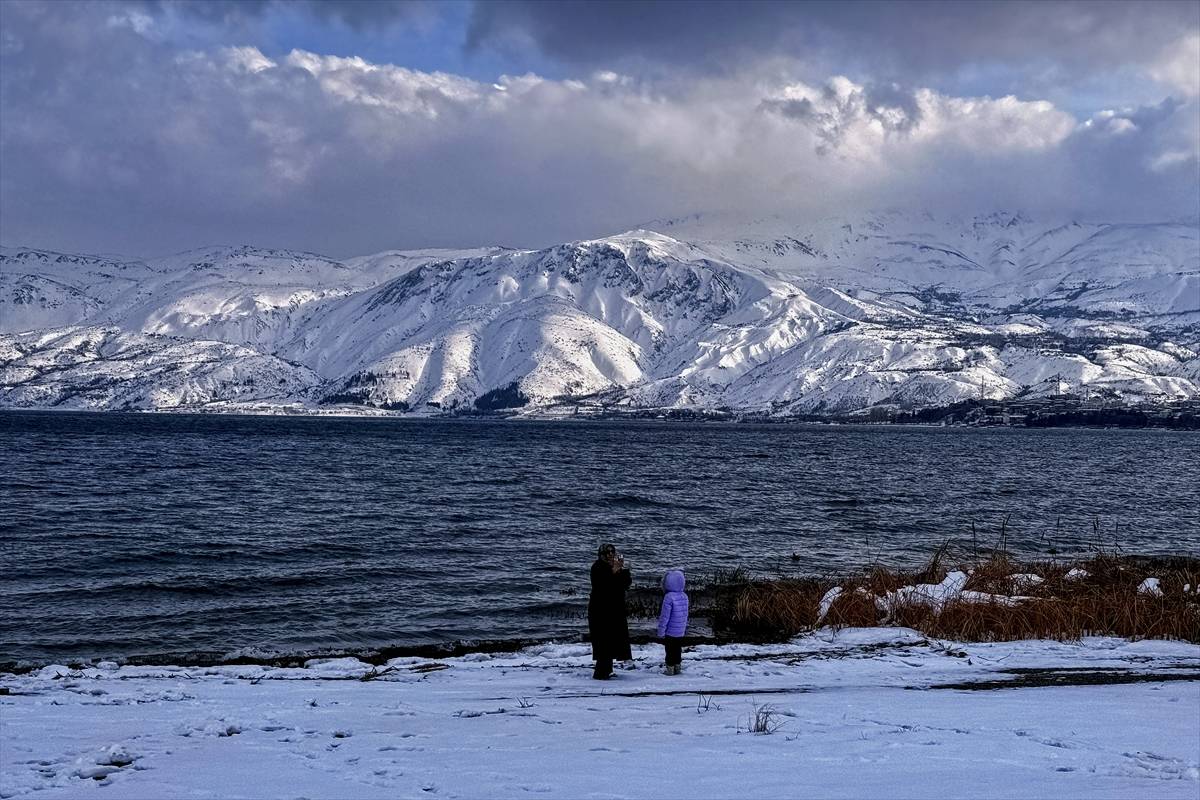 Elazığ’ın Sivrice ilçesinde Hazar Gölü, kış aylarında çevresi karla kaplı manzarasıyla ziyaretçilerini ağırlıyor.