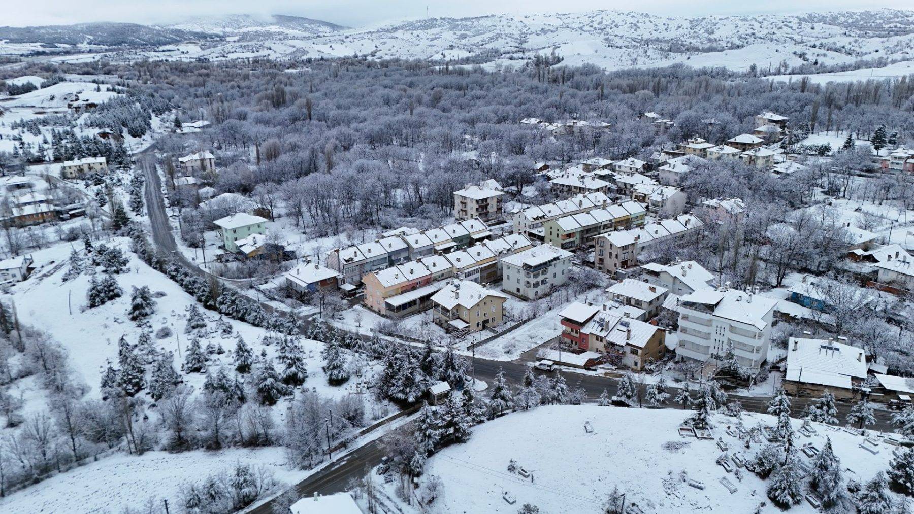 Sultan Dağları eteklerinde yer alan ve kar yağışının etkili olduğu Bağkonak, Kozluçay ve Kuyucak köylerinde camiler, ev ve konaklar havadan görüntülendi.