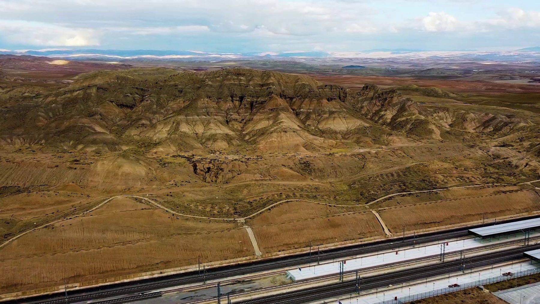 Yerköy ilçesinde bulunan Yeni Hızlı Tren İstasyonu’nun yanındaki tepede meydana gelen doğal oluşumlar, görenlerin dikkatini çekiyor.