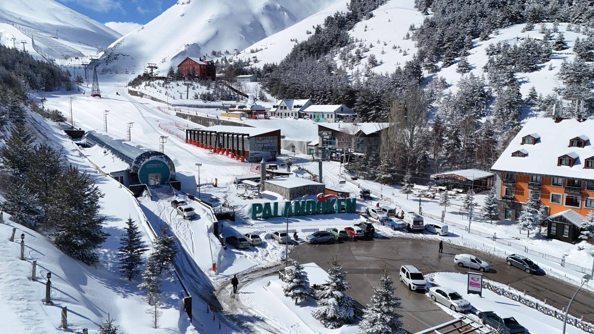 Palandöken Kayak Merkezi’nin karla kaplı hali dronla görüntülendi.
