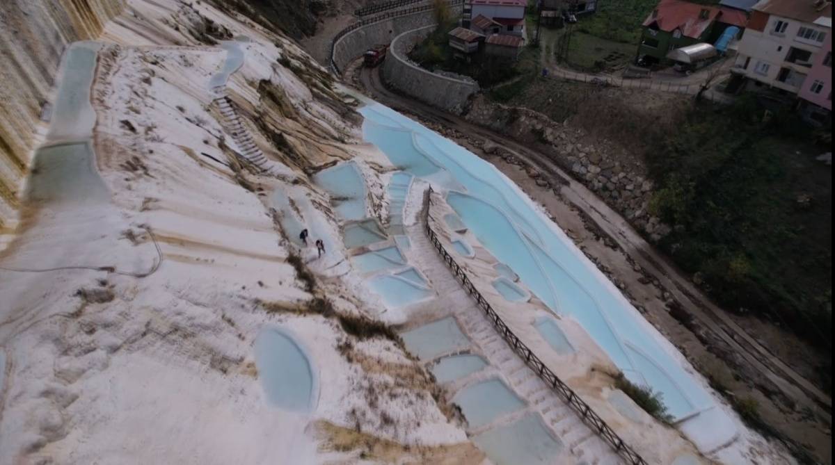 Giresun Valiliği İl Özel İdaresi tarafından 2020 yılında başlatılan proje kapsamında 2022’de ziyarete açılan; teras şeklinde büyüklü küçüklü göletlerden oluşan Göksu Travertenleri, hem Türkiye’den hem de yurt dışından yoğun ilgi görüyor.