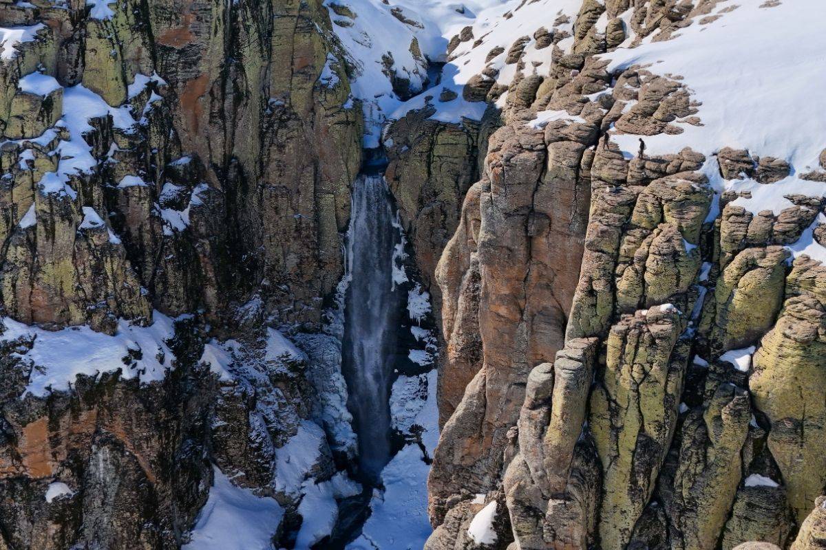 Bingöl’de kış boyunca donan, yazın ise kuruyan Çır Şelalesi, karların erimesiyle yeniden hayat buldu. Deşt Yaylası’nda yaklaşık 50 metre yükseklikten dökülen sular, doğaseverlere eşsiz manzara sunuyor.