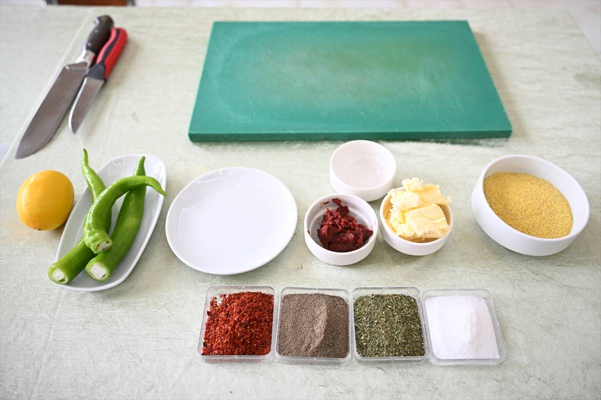 - Yeşil biberler ince ince doğranıp tereyağında salça ile kavurulur.