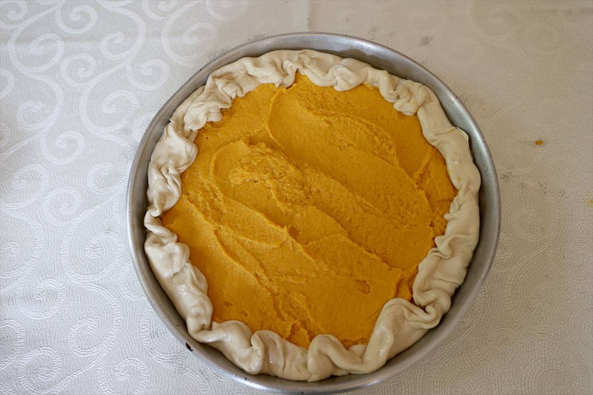 10.Püre hamurun içerisine dökülüp kenarları pizza şeklinde içeriye doğru katlanır.