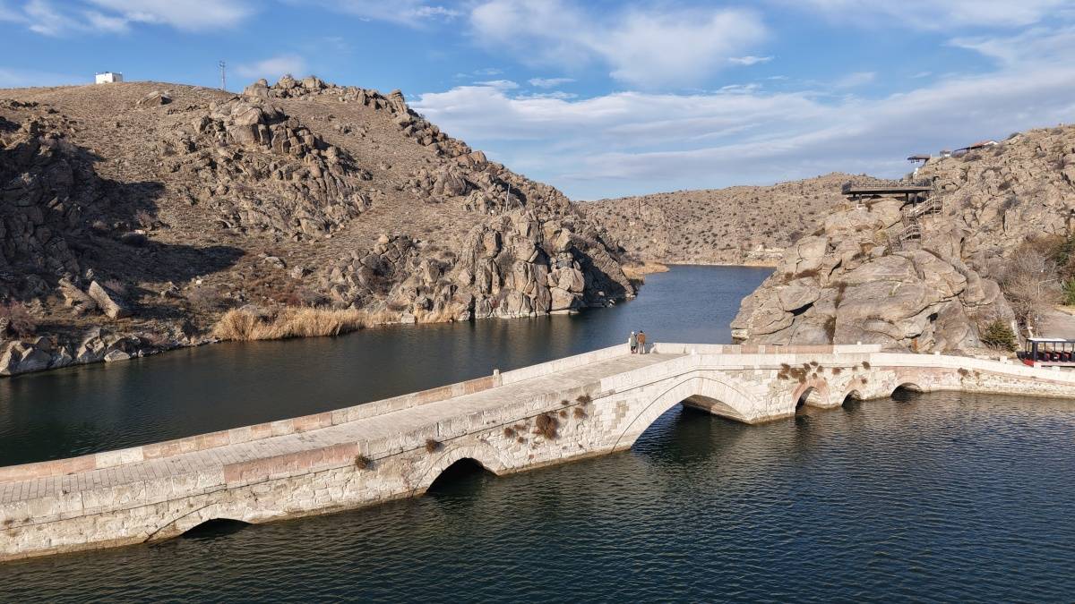 Kırıkkale’de, Anadolu Selçuklu döneminin önemli eserlerinden Çeşnigir Köprüsü ile çevresindeki kanyon, tarih ve doğanın iç içe olduğu görüntülerle dikkat çekiyor.