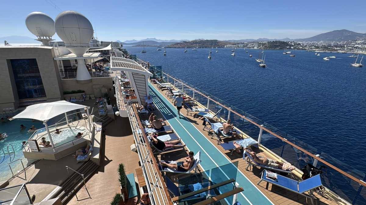 Kruvaziyerin Bodrum’un ardından Girit Limanı’na hareket edeceği öğrenildi. TUI Üst Yöneticisi Sebastian Ebel gemide basınla buluştu