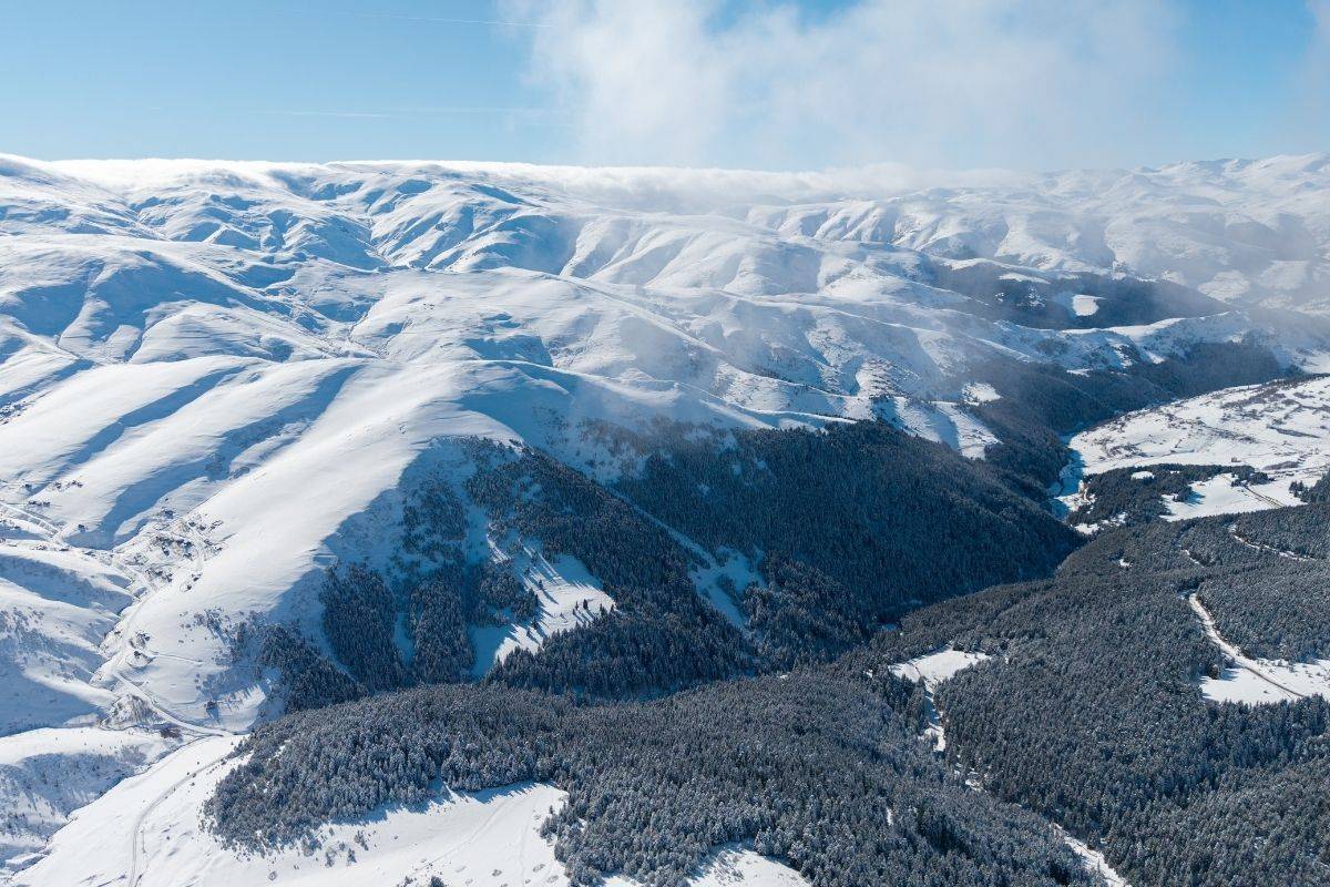 Yaklaşık 1000 ile 1600 metre rakım arasında çekilen görüntülerde, alt kesimlerde yeşil dokunun hakim olduğu alanların, yükseldikçe yerini karla kaplı beyaz örtüye bıraktığı görülüyor.