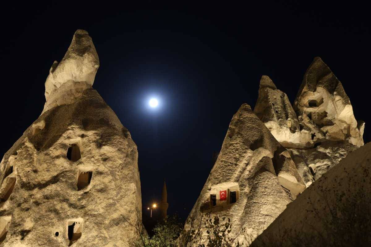 Her yıl milyonlarca turistin ziyaret ettiği, UNESCO Dünya Doğal ve Kültürel Mirası Listesi’nde yer alan Kapadokya’da, “Kunduz Süper Ay”ı, peribacaları ile kartpostallık görüntüler ortaya çıkardı.